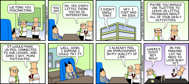O>Объясните плз отставшему от жизни, я не понимаю зачем нужен твиттер и какие проблемы он решает, кто активно пользуется, чем он ТАК удобен в отличии от обычного блога? В европах вроде бы туда можно писать бесплатно через СМС, таким образом получается что это система в которой можно послать смску для всех кто в определенной группе, а не для одного человека. Вроде бы революцию в Молдавии делали с помощью твиттера еще) А у нас-то что ловить в нем?